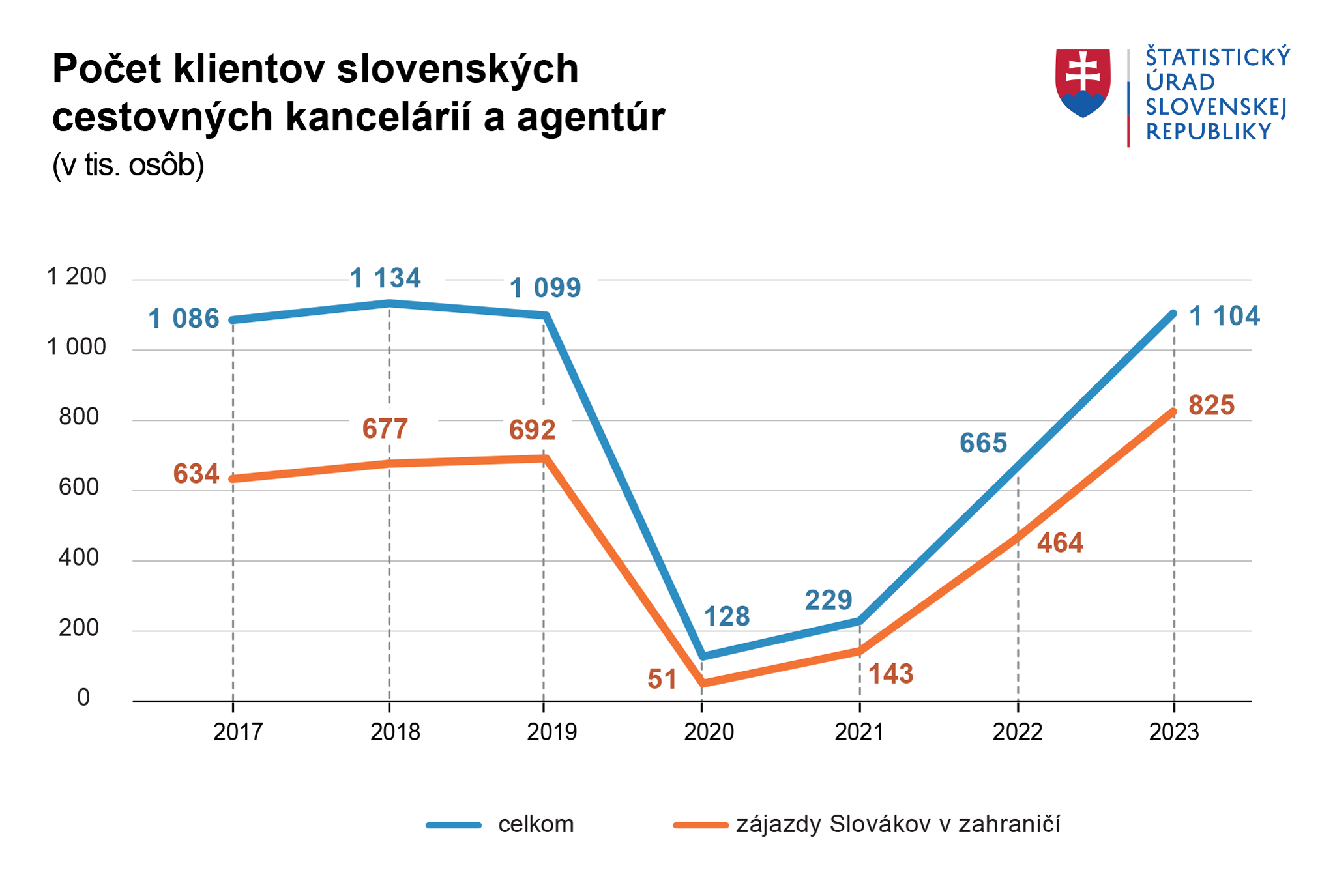 Ekonomické ukazovatele cestovných kancelárií a agentúr za rok 2023 vyzerajú viac než priaznivo. Celkové tržby vzrástli o takmer 40 % oproti predchádzajúcemu roku, čím dosiahli hodnotu 907 miliónov eur, čo je dokonca o pätinu viac ako v roku 2019. Najväčší podiel na tomto náraste mali tržby z pasívneho cestovného ruchu, teda zo zájazdov Slovákov do zahraničia. Zaujímavosťou je, že aj aktívny a domáci cestovný ruch vykázali dvojciferný nárast, pričom len tržby z aktívneho cestovného ruchu, teda od cudzincov za pobyty na Slovensku, zaostávali za predkovidovými hodnotami.