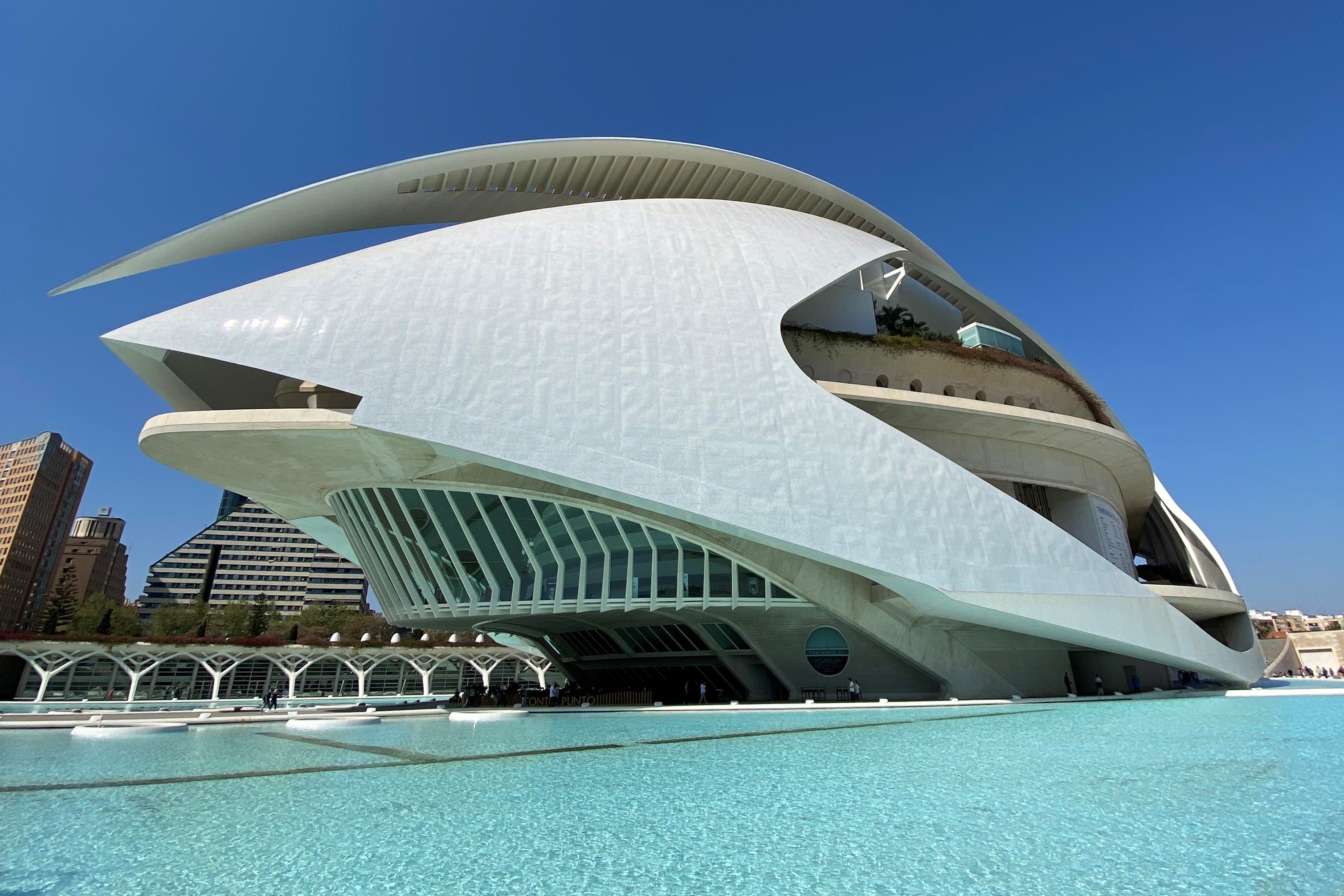 Každé mesto má svoju ikonickú budovu a pre Valenciu je to Mesto umení a vied. Architekt Santiago Calatrava a Félix Candavela nadizajnovali komplex, ktorý je národným múzeom, a urbanistickým dielom. Nájdete tu zelené plochy, vodné zrkadlá, verejné priestory, športoviská, botanickú záhradu, palác hudby, vedecké múzeum, morský park a oceánografické múzeum. Všetky budovy sú inšpirované prírodou. Vedecké múzeum princa Filipa bolo inšpirované kostrou dinosaura, planetárium L’Hemisferic zas lastúrou, ktorá vyčnieva z vody. Na tento komplex si nechajte minimálne jeden deň, pretože sa tu skutočne nebudete vedieť nabažiť monumentálnosti budov z bieleho betónu. Dokonca si tu môžete prenajať aj loďku či elektrický paddleboard a po vodných plochách sa pohybovať po vode.