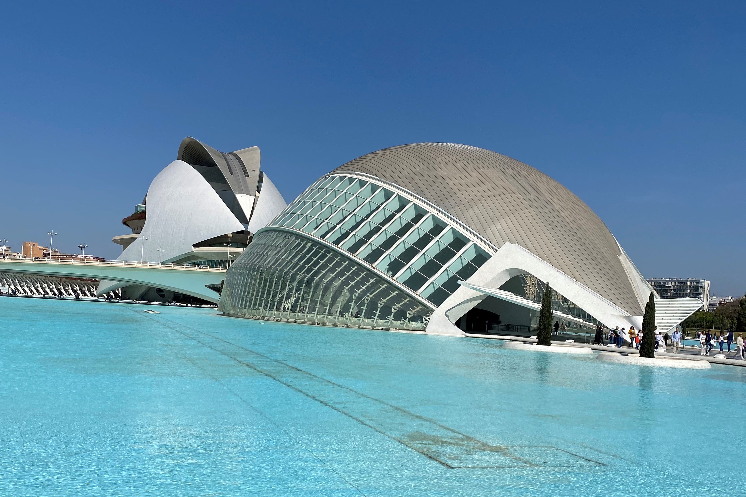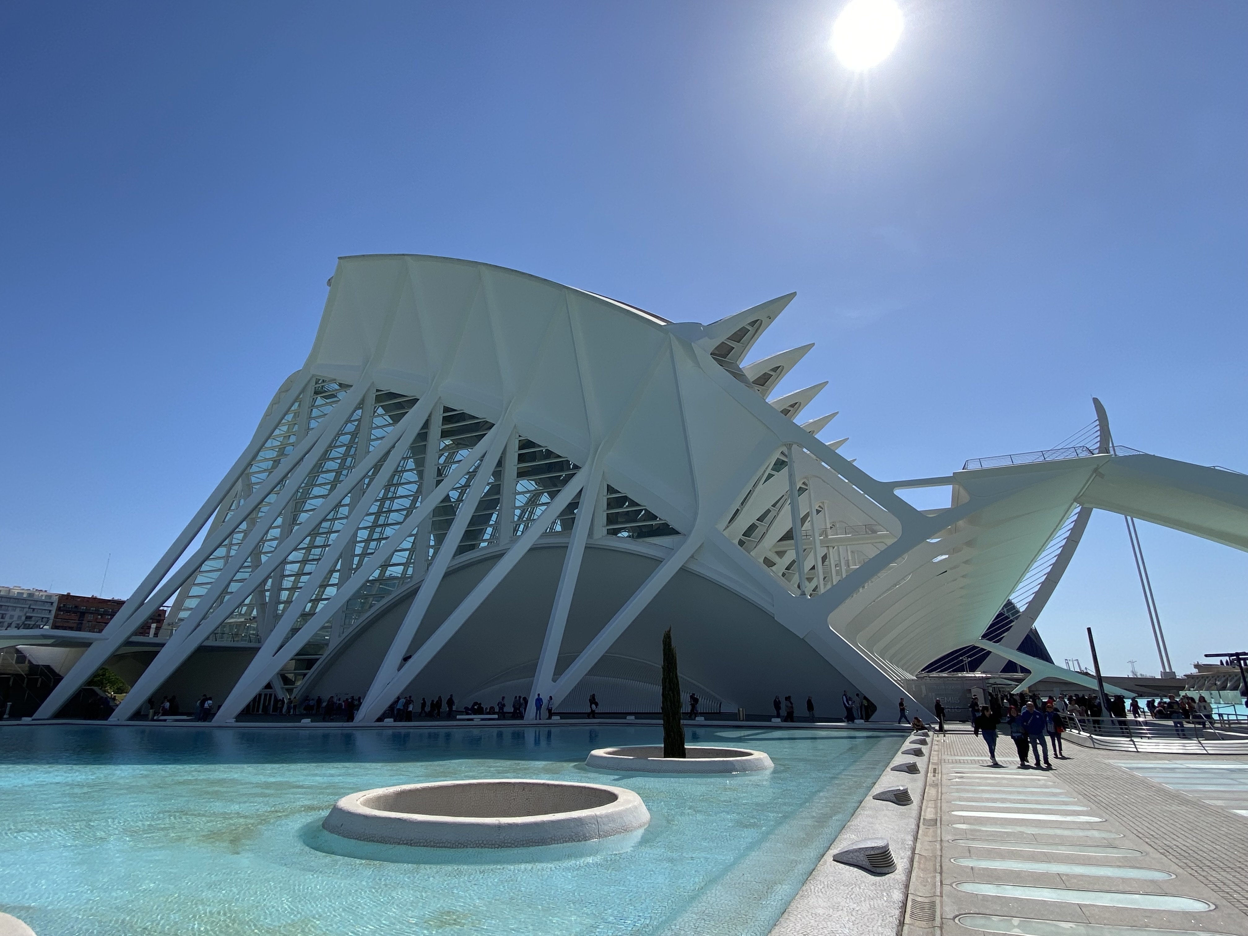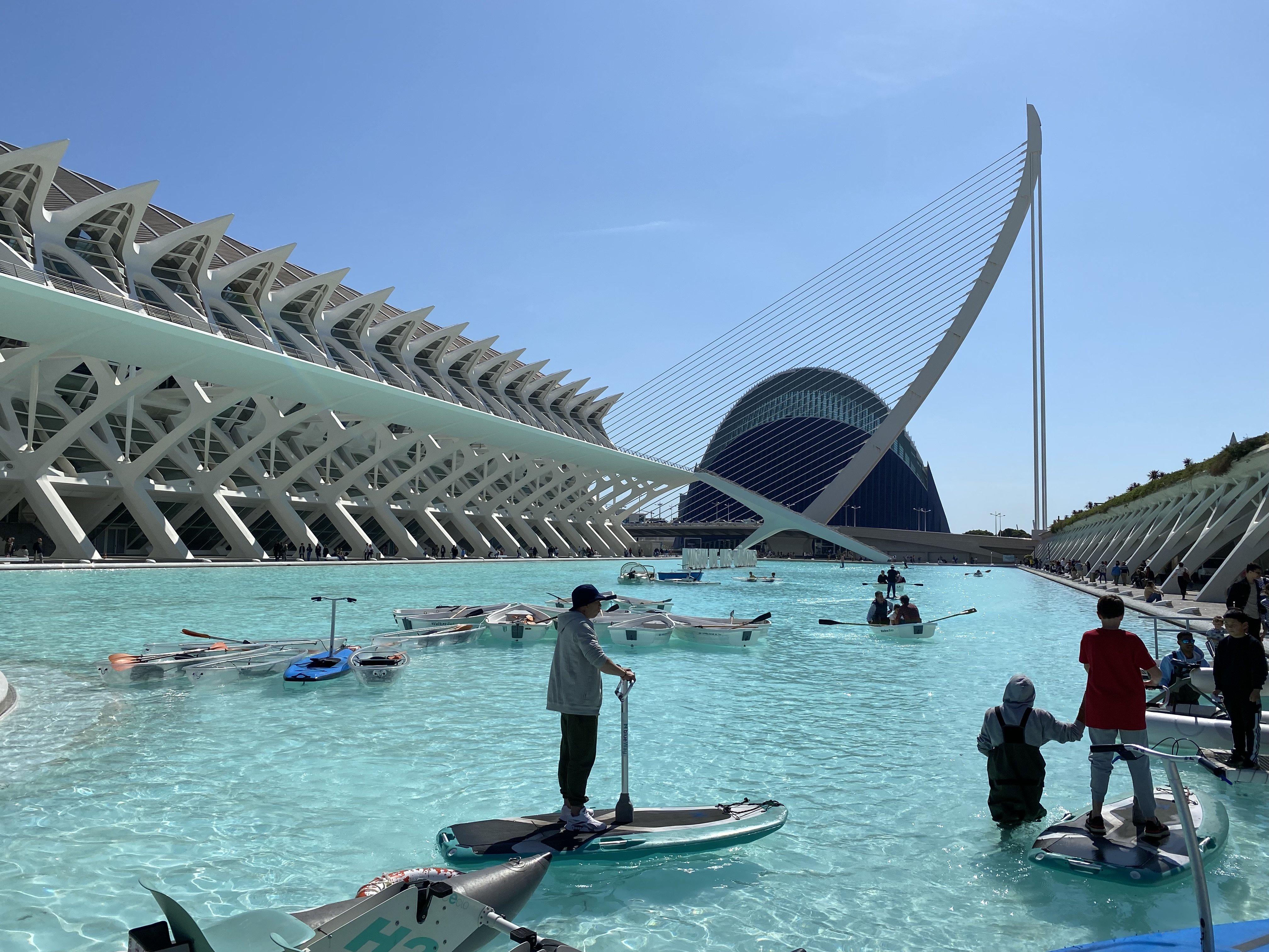 Každé mesto má svoju ikonickú budovu a pre Valenciu je to Mesto umení a vied. Architekt Santiago Calatrava a Félix Candavela nadizajnovali komplex, ktorý je národným múzeom a urbanistickým dielom. Nájdete tu zelené plochy, vodné zrkadlá, verejné priestory, športoviská, botanickú záhradu, palác hudby, vedecké múzeum, morský park a oceánografické múzeum. Všetky budovy sú inšpirované prírodou. Vedecké múzeum princa Filipa bolo inšpirované kostrou dinosaura, planetárium L’Hemisferic zas lastúrou, ktorá vyčnieva z vody. Na tento komplex si nechajte minimálne jeden deň, pretože sa tu skutočne nebudete vedieť nabažiť monumentálnosti budov z bieleho betónu. Dokonca si tu môžete prenajať aj loďku či elektrický paddleboard a po vodných plochách sa pohybovať po vode.