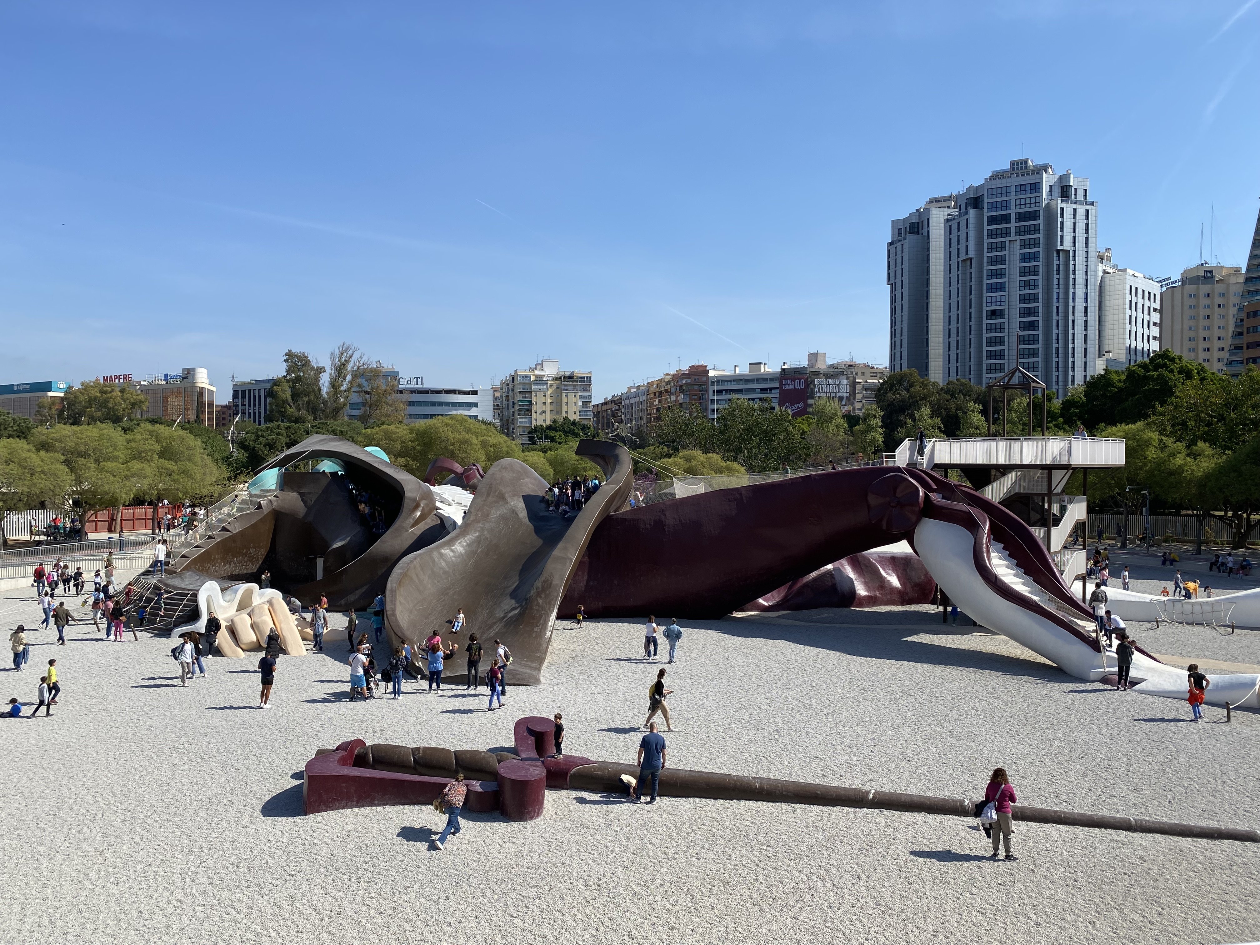Keď rieka pravidelne zaplavuje mesto, zvyčajne je to katastrofou, no Španieli aj túto nevýhodu otočili vo svoj prospech. Rieku Turia odklonili z mesta a dnes sa vlieva do Stredozemného mora úplne inde. No a jej koryto premenili na viac než 8-kilometrový park plný cyklotrás, oddychových zón, fontán, zelene, športovísk a ihrísk. Medzi nimi vyniká Guliverov park, čo je ihrisko pre malých aj veľkých vytvorené z postavy spadnutého 70-metrového Gullivera. Na túto atrakciu zadarmo však často stojí dlhý pás ľudí, preto sa vyzbrojte trpezlivosťou. Rad sa však hýbe rýchlo. Celý zelený pás mesta križuje osemnásť mostov, a tak sa k nemu dostanete poľahky od severného konca starého mesta až po východný koniec pri Meste umení a vied.