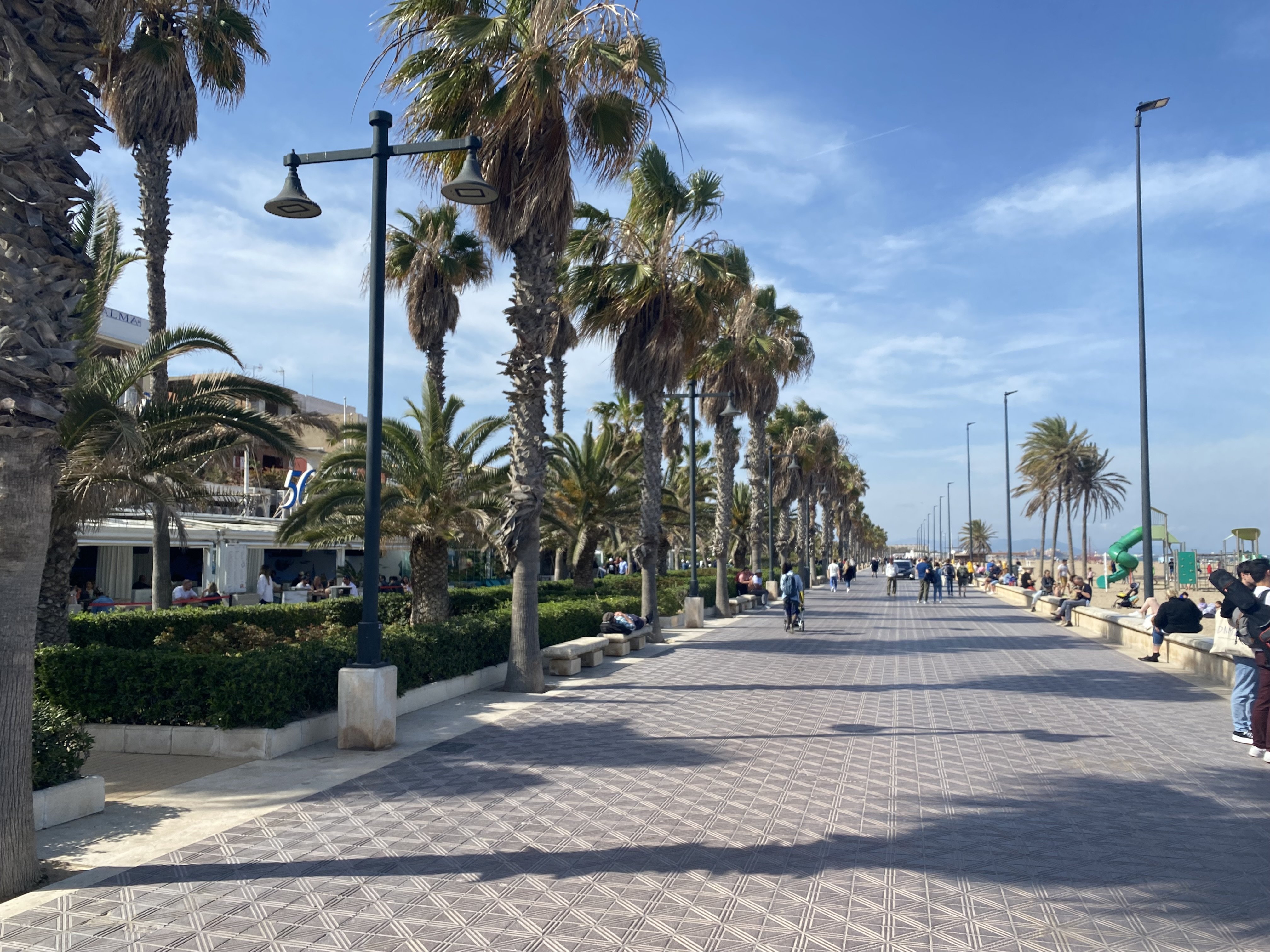 Z letiska vo Valencii sa do centra ľahko dostanete dvomi linkami metra. Červená linka 3 a zelená linka 5 sú lacný a rýchly, asi polhodinový presun z letiska. Lístky si kúpite ľahko v automatoch pri vstupe do metra, kde sa dá platiť kartou. Sieť metra vo Valencii je kvalitná, no my odporúčame požičanie bicykla. Požičovní mestských (aj elektro) bicyklov je mnoho na každom rohu, k tomu aj rôzne služby zdieľaných bicyklov. Nájdete aj požičovne za 8 eur na deň. Bicykle požičiavajú samozrejme aj so zámkou. Cyklotrasy sú po meste výborne urobené a cyklisti sú oddelení od dopravy. Túto možnosť sme využili na výlet k Playa de las Arenas – širokej piesočnatej pláži mesta. Tá je uprostred dlhej série pláží na sever i na juh, ktoré sú lemované reštauráciami a kaviarňami a oddychovou atmosférou.