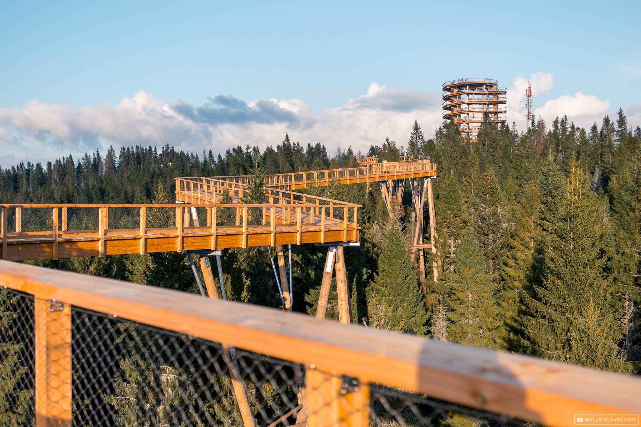 Na konci lanovky je vstup na samotný chodník. Drevená konštrukcia sa vinie v korunách stromov s dĺžkou 603 metrov a vaša prechádzka bude vo výške 24 metrov nad zemou. Výhľady na okolité lesy a kopce, ale aj štíty Tatier, obzvlášť počas jesene, stoja za to. Konštrukcia veže na konci chodníka dosahuje 32 metrov a napája sa na ňu chodník s ďalšími 631 metrami. Na jej vrchole je inštalovaná aj pochôdzna sieť, tak vás okrem výhľadov čaká aj trocha adrenalínu. Za 2 eurá môžete absolvovať jazdu 67 metrov dlhým suchým toboganom pre dospelých aj deti nad 120 cm. Dole tak budete v priebehu niekoľkých sekúnd. Ak sa vám táto jazda zapáči, jazdu na lanovke nadol môžete vymeniť za bobovú dráhu.