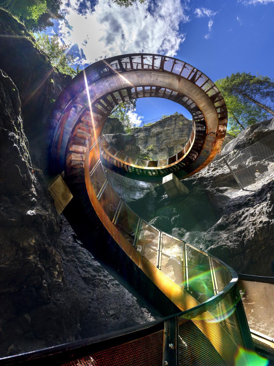 Obnova ciest na tejto atrakcii zahŕňala aj tri tunely, štyri galérie a 60 sietí na zachytenie padajúcich skál. Všetko pritom muselo byť pre zložitý terén dopravené vrtuľníkmi. Najdominantnejším dielom tiesňavy je teraz Helix. Sú to točité oceľové schody, ktoré špirálou klesajú do tridsaťmetrovej hĺbky kaňonu.