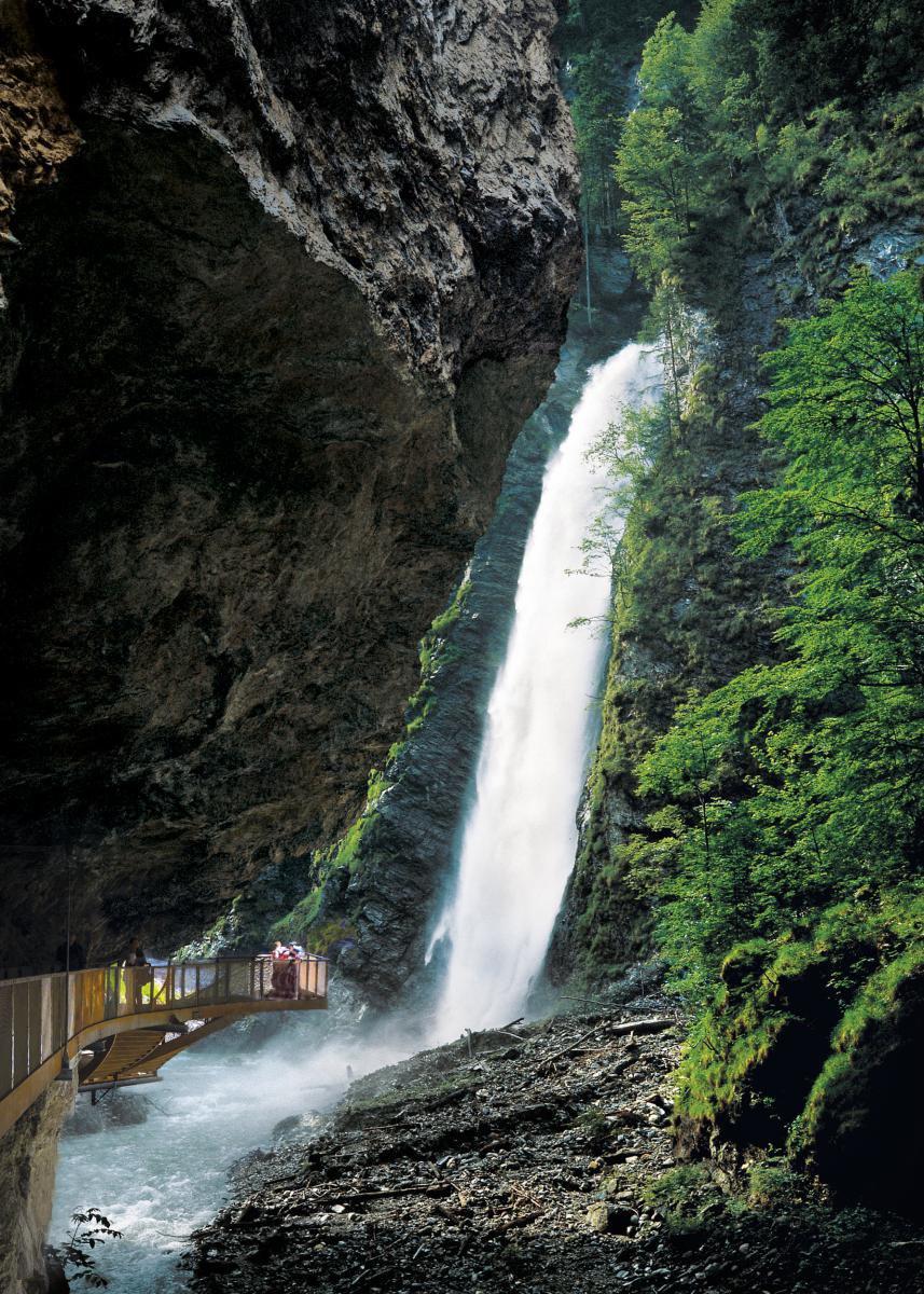 Každá turisticky populárna atrakcia má svoj vrchol na záver. Pri Liechtensteinklamm to je vodopád. Slnečné lúče dopadajúce sem skrz kvapôčky vody vytvárajú dúhové obrazce a vlhké skaly sú porastené machom. K tomu sa stále pohybujete neustále obklopení mohutnými skalnými útesmi. Jednoducho zážitok, z ktorého si odnesiete viac než len pár fotiek.