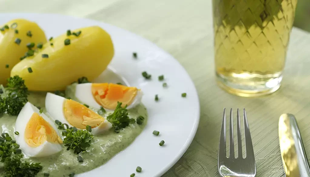 Ak sa chcete posilniť niečím skutočne lokálnym, tak to, čo poznáme ako originálne frankfurtské párky, sa tu volá Brühwurst. Podáva sa klasicky s chlebom, horčicou alebo chrenom. O niečo sýtejší je tunajší zelený prívarok s vajcom, Grüne Soße. V jeho omáčke nájdete sedem bylín - borák, trebuľku, žeruchu, petržlen, krvavec, šťaveľ a pažítku. Spláchnuť to, samozrejme, môžete jedným z početných nemeckých pív, no v Hesensku je tradičným nápojom Apfelwein, jablkový alkoholický drink, ktorý je veľmi podobný cideru.