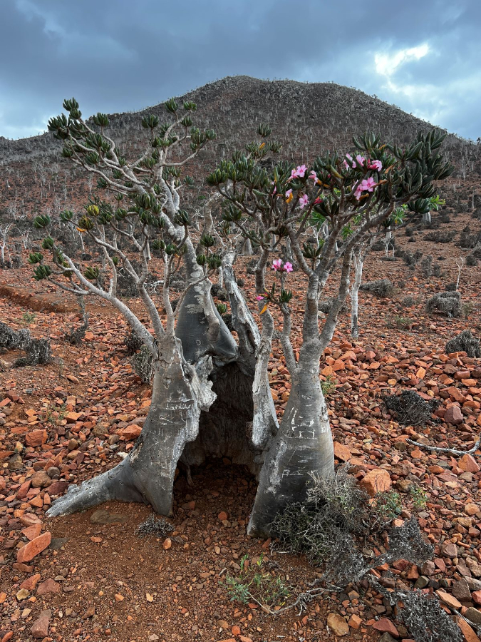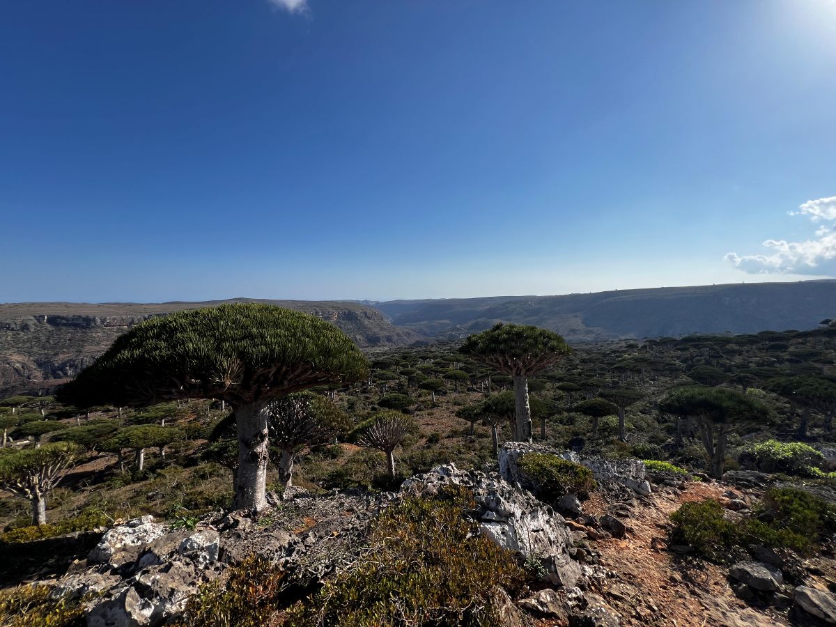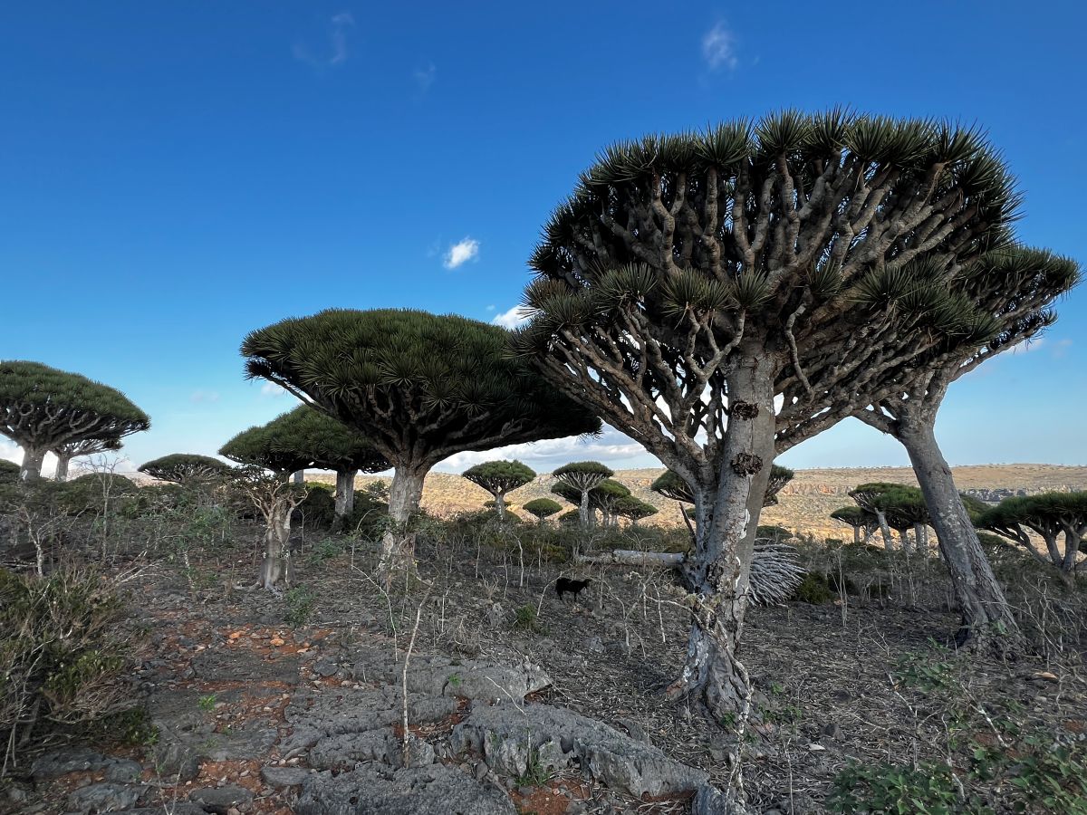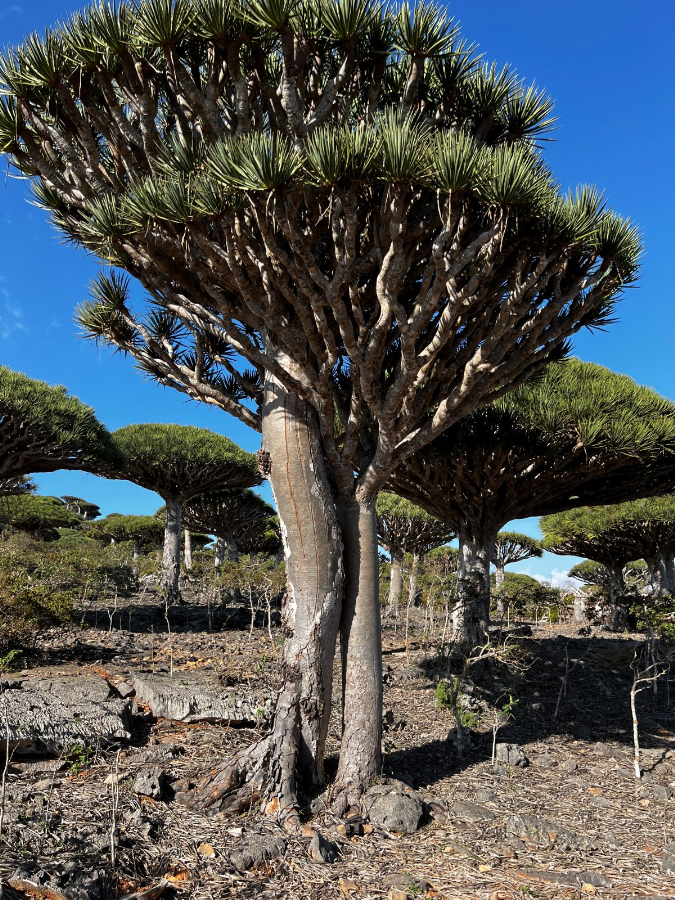Ikonou Sokotry sú dračie stromy. Najväčšie koncentrácie nájdete na náhorných plošinách Momi a Dixam. Ich koruny majú tvar obráteného dáždnika a pri rannom svetle vrhajú dlhé tiene na kamenisté podložie. Medzi nimi rastú kadidlovníky, myrhovníky a fľaškové stromy (bottle trees), ktorých kmene zadržiavajú vodu. Táto krajina pôsobí skôr ako botanická anomália než ako realita.