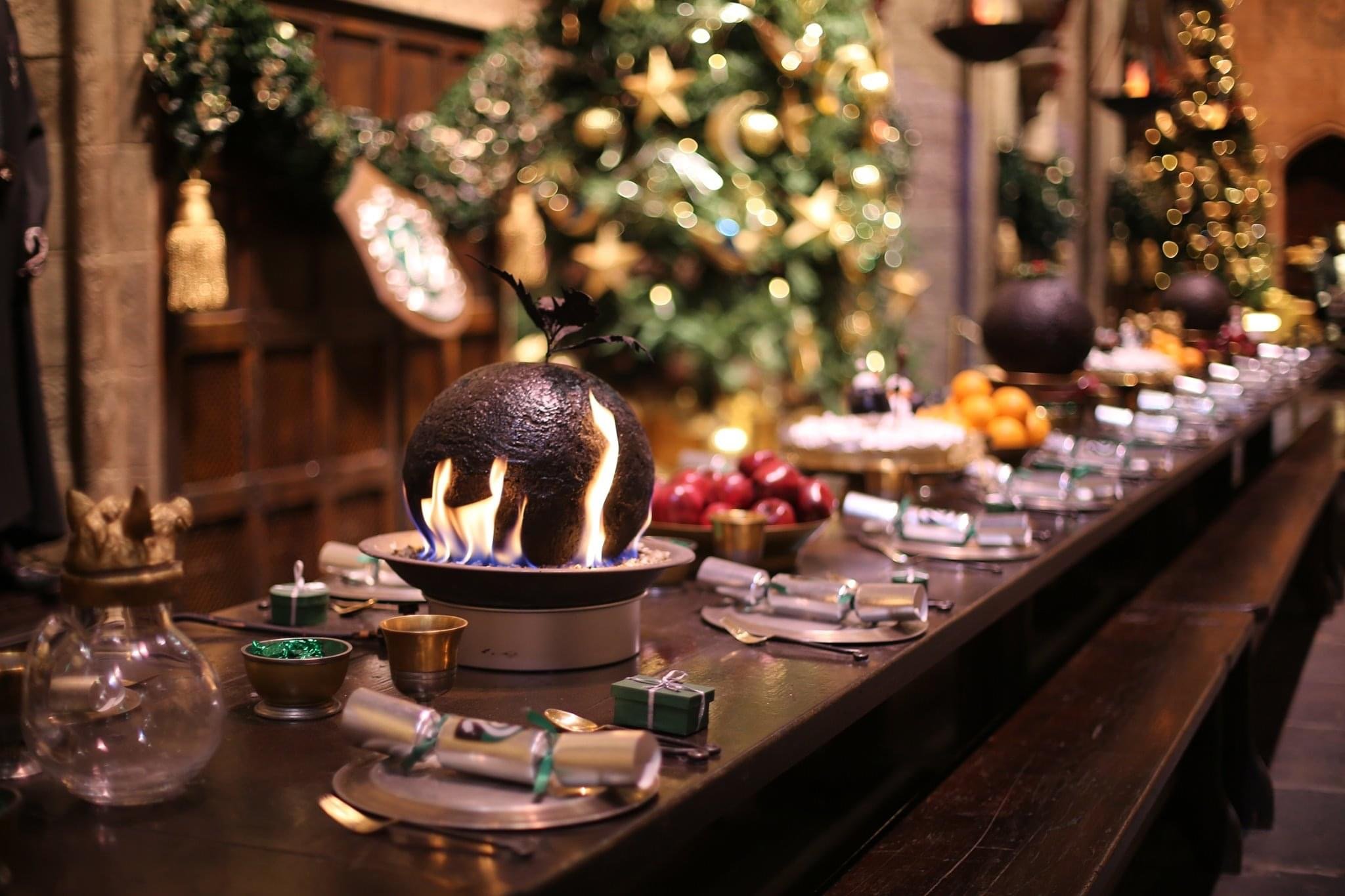 Keď vkročíte do autentickej Veľkej siene, privítajú vás vence, girlandy a stromy doplnené čarodejnicami na miniatúrnych metlách. Dlhé jedálenské stoly budú vyzdobené tak, ako boli počas hodovania v Harrym Potterovi a Kameň mudrcov, presne ako vo filme s vianočným pudingom, s pečenými morkami, ďatelinovým pivom a hromadou šuniek.