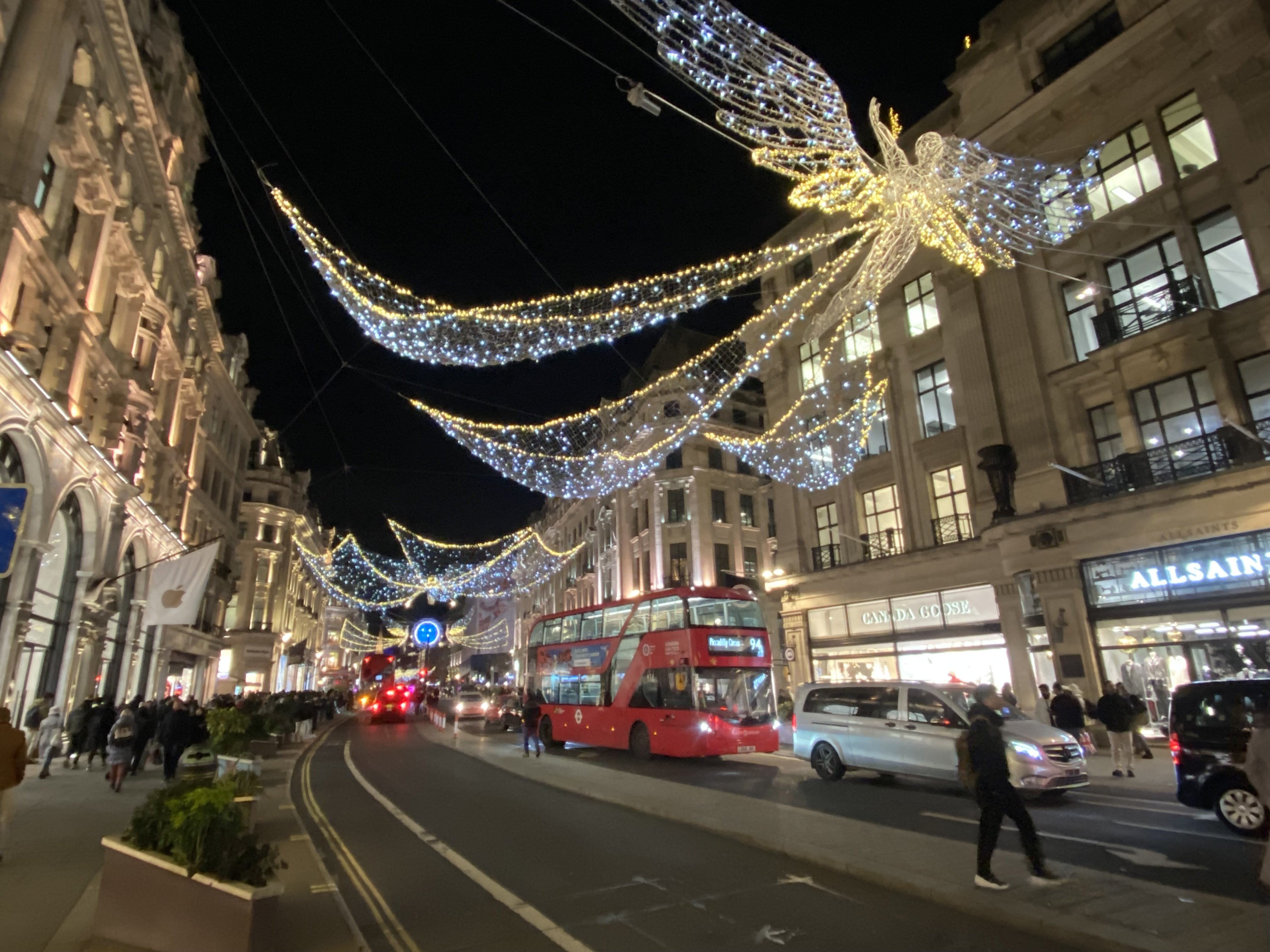 Jedna z najväčších a najobľúbenejších nákupných cieľov v centre Londýna, bola úplne prvou ulicou v Londýne, ktorá mala vianočné osvetlenie už v roku 1954. Nápis "Spirits of Christmas" vyčarí kúzlo Vianoc vďaka trblietavým anjelom.