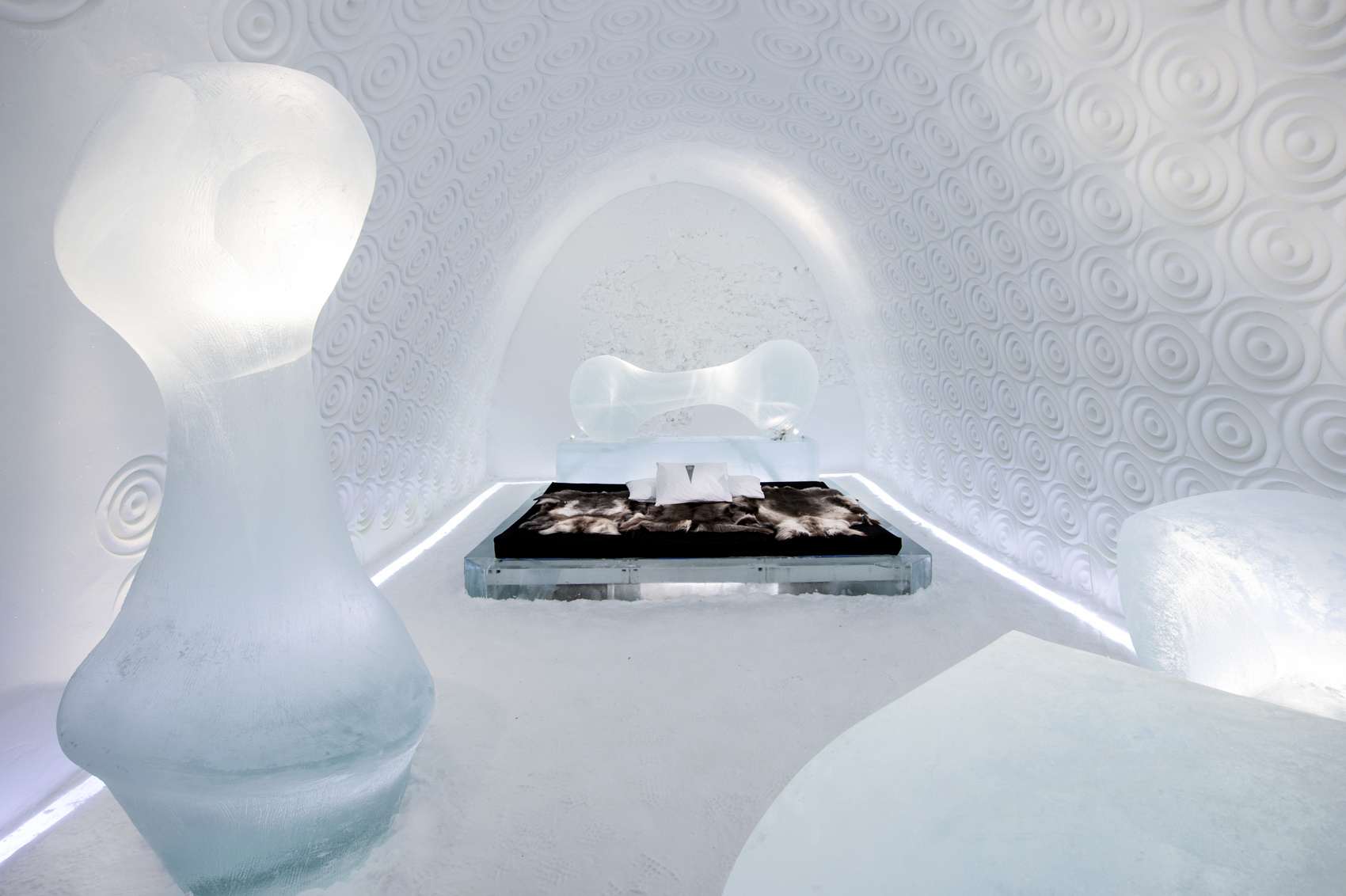Jég több témára: az Icehotel alapítása, vagyis 1989 óta évente 2500 darab, egyenként kéttonnás, havas jégdarabot (amelyet a Torne folyóból vágnak ki) használ fel, hogy minden évben csodás dizájnnal várja azokat, akik az északi sarkköri vidéken szeretnének vakációzni és a sarki fény megtekintése mellett más maradandó élményre is vágynak. Ez a jéghotel a többivel ellentétben egész évben nyitva tart, szállásfoglaláskor 20 tematikus szoba közül választhatunk, a helyszínre érve pedig iszogatni a bárban, kulturálódni pedig az év 365 napján üzemelő művészeti galériában tudunk.