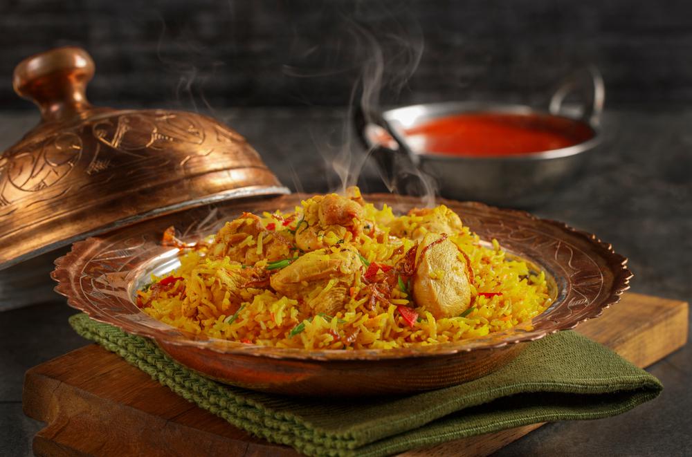 A csirkecombokat bepácoljuk joghurt, zúzott fokhagyma, friss reszelt gyömbér, citromlé, só, garam masala, chilipor és kurkuma keverékével és hagyjuk pihenni. Közben olajon megpirítjuk a hagymát és a fokhagymát, hozzáadjuk a csillagánizst, köményt, babérlevelet, szegfűszeget és fahéjat, majd beletesszük a pácolt húst. Ha a hús egyik fele megpirult, megfordítjuk, rászórjuk a rizst, hozzáadjuk a mentalevelet, garam masalát, pirospaprikát és chilit. Felöntjük sáfrányos tejjel és közepes lángon készre pároljuk. Mentás joghurttal tálaljuk.