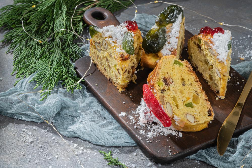 Az apróra vágott aszalt és kandírozott gyümölcsöket portóival meglocsoljuk. Az élesztőt meleg tejben felfuttatjuk. A vajat a cukorral habosra keverjük, hozzáadjuk a reszelt narancs- és citromhéjat, a tojásokat, végül a felfuttatott élesztőt, lisztet és egy csipet sót. Sima tésztává dolgozzuk, beletesszük a gyümölcsöket, egy szem babot és kelni hagyjuk. A megkelt tésztát kör alakúra formázzuk, sütőpapírral bélelt tepsibe tesszük, közepébe lyukat formázunk, amibe hőálló formát teszünk. A tésztát megkenjük tojással és kandírozott gyümölcsökkel díszítjük. Mérsékelten meleg sütőben sütjük, tálaláskor porcukorral meghintjük és kíváncsian várjuk, hogy ki találja meg a szerencsehozó babszemet.
