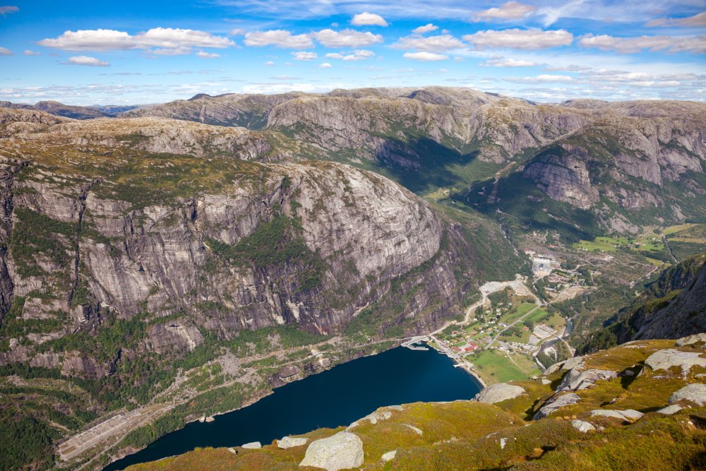 A norvégiai Lysebotn falu annyira elszigetelt helyen van, hogy csak hajóval vagy a fenti képen látható kanyargós szerpentinen lehet megközelíteni. A Lysefjord végén található apró településen turistatömegre nem kell számítani, és a helyi lakosság száma is csekély.