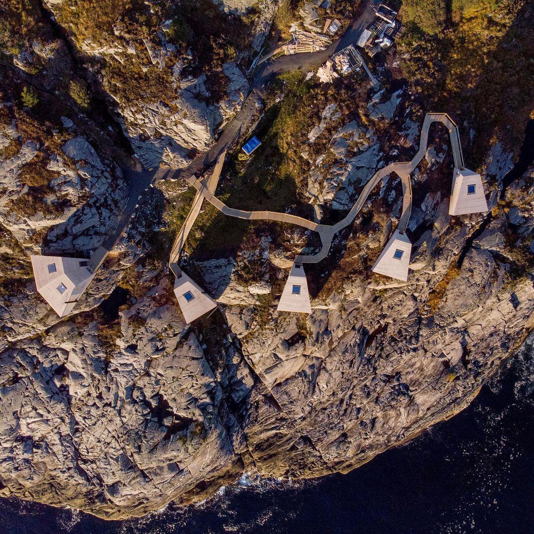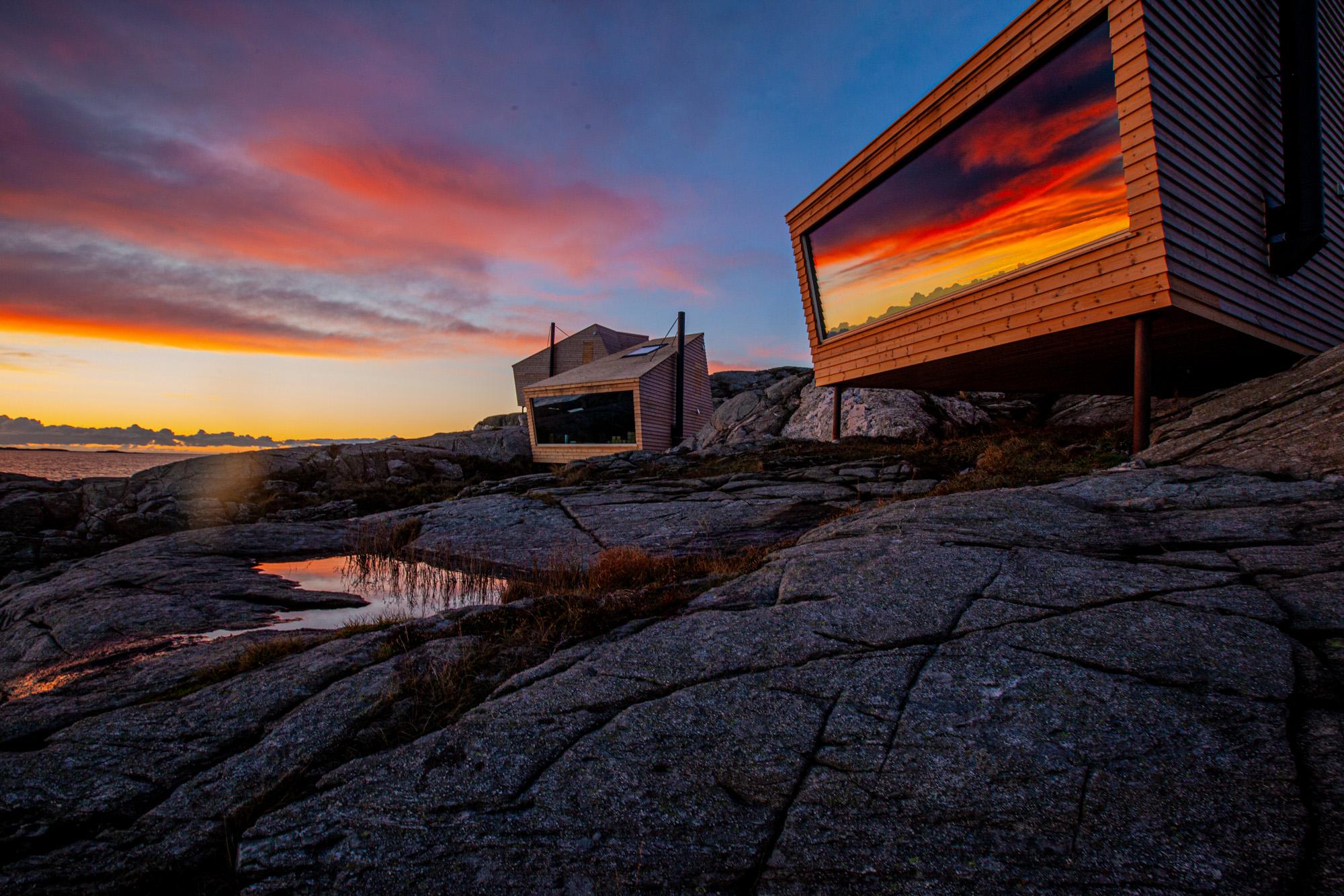 Öt faházat épített a Holon Arkiterktur egy kis községben, Sveióban, a norvég tengerparton. A Flokehyttenének elnevezett, nagyjából háromszög alakú kabinokat úgy tervezték meg, hogy a tenger felé teljes kilátásban gyönyörködhessünk. A Ryvarden világítótorony mellett kaptak helyet a mini házak, és olyan szerkezettel és anyagokból készültek, hogy a szélsőséges hideg, szeles időjárásnak is ellenálljanak – például a háromszögformát is azért választották, mert a szél irányát figyelembe véve, így árthat legkevésbé a viharos szél az építményeknek.
