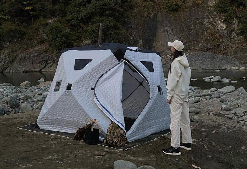 A japán IAM Sauna cég egy fatüzelésű kályhával fűtött szauna-sátrat dobott piacra, ami tökéletes módja a szabadtéri szauna élvezetének még a hideg évszakban is. Hordozható, így még egy hosszú, a vadonban túrázással vagy terepkerékpározással töltött nap végén is biztosítja egy forró szauna előnyeit.