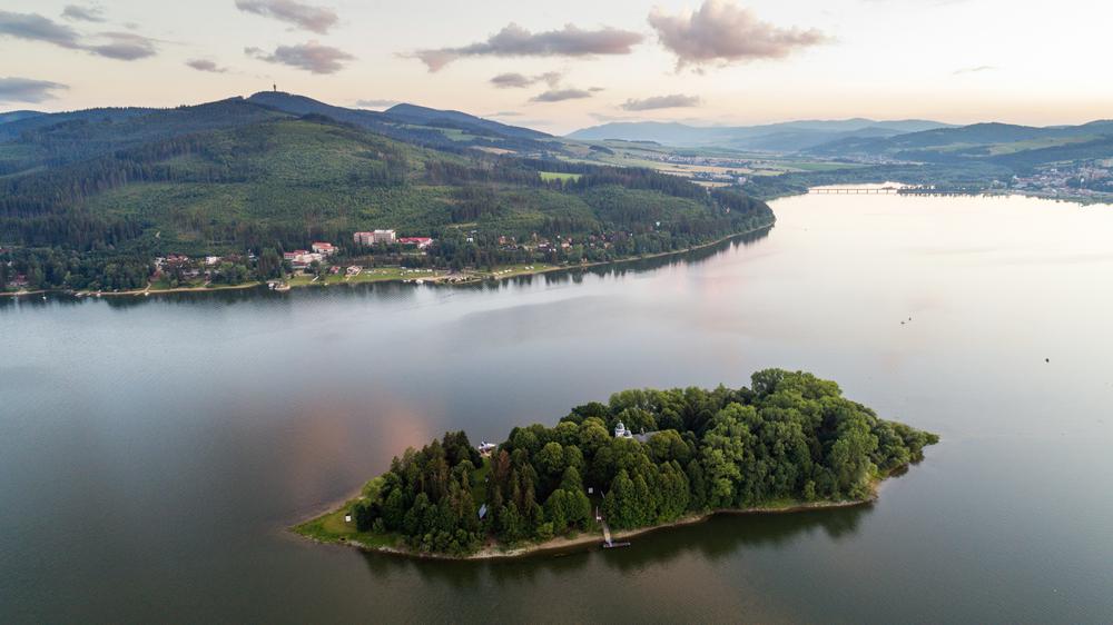 A szlovák-lengyel határig nyúló Árvai-víztározó az Árva folyó mesterséges felduzzasztásával jött létre. Ezen a vidéken korábban szintén gyakoriak voltak az árvizek, ez indokolta a megépítését, ami 1941-től 1954-ig tartott. A völgy feltöltésével több falu is víz alá került, csak a Szlanica község melletti domb nem. Így jött létre a víztározó közepén a Szlanicai-sziget, amelyet a Művészetek szigetének is neveznek. Egy 18. századi templom áll rajta, a sziget a partról induló hajójáratokkal érhető el.