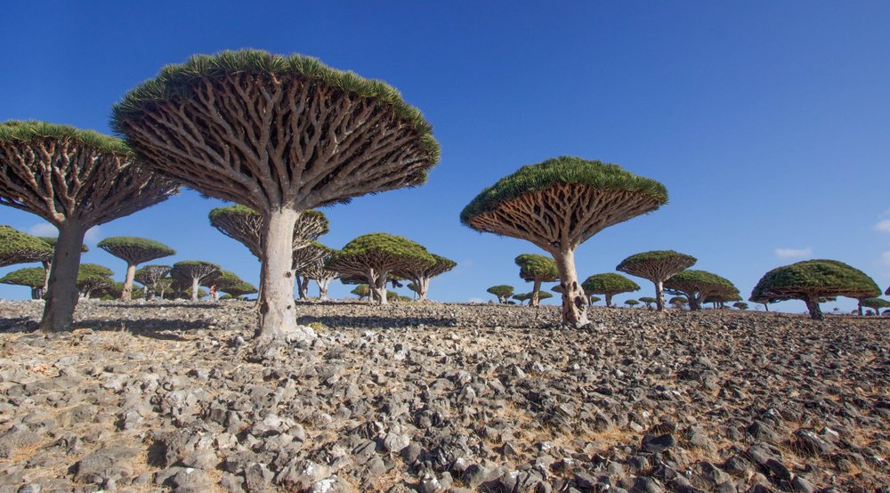 Socotrában találhatóak ezek az ősöreg sárkányfák, amelyek több ezer évesek. A sziget Jementől kb. 250 kilométerre, az Indiai-óceánban található és a Jemeni Köztársasághoz tartozik. A „Sárkány vére fa" azért kapta ezt a nevet, mert a növény törzse vöröses nedvet termel. De nem ez az egyetlen furcsaság errefelé, hiszen ennek a szigetnek egészen egyedi a flórája és faunája, lesz tehát még min csodálkozni.