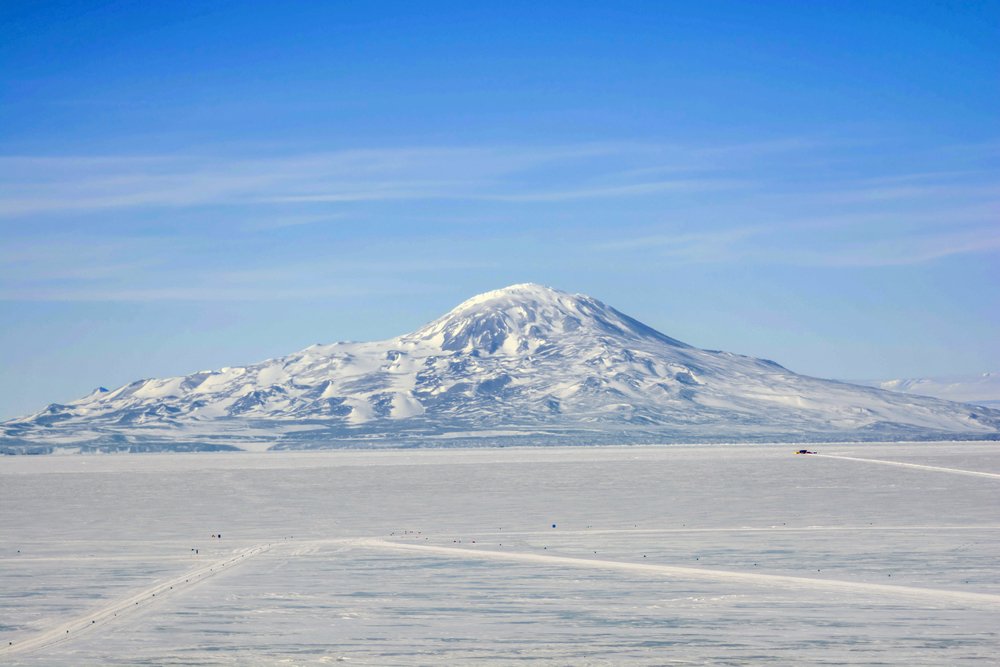 Új-Zélandi territórium ez a csodálatos hely az Antarktiszon: a Mount Erebus a maga 3794 méterével az Antarktisz második legmagasabb vulkánja, nem mellesleg aktív is, egy hatalmas kráterrel. Ez a világ egyik leghidegebb helye, így amikor itt kitör a vulkán, a jég a forró lávával találkozik, a hideg miatt pedig hamar meg is köt a folyékony kőzet.
