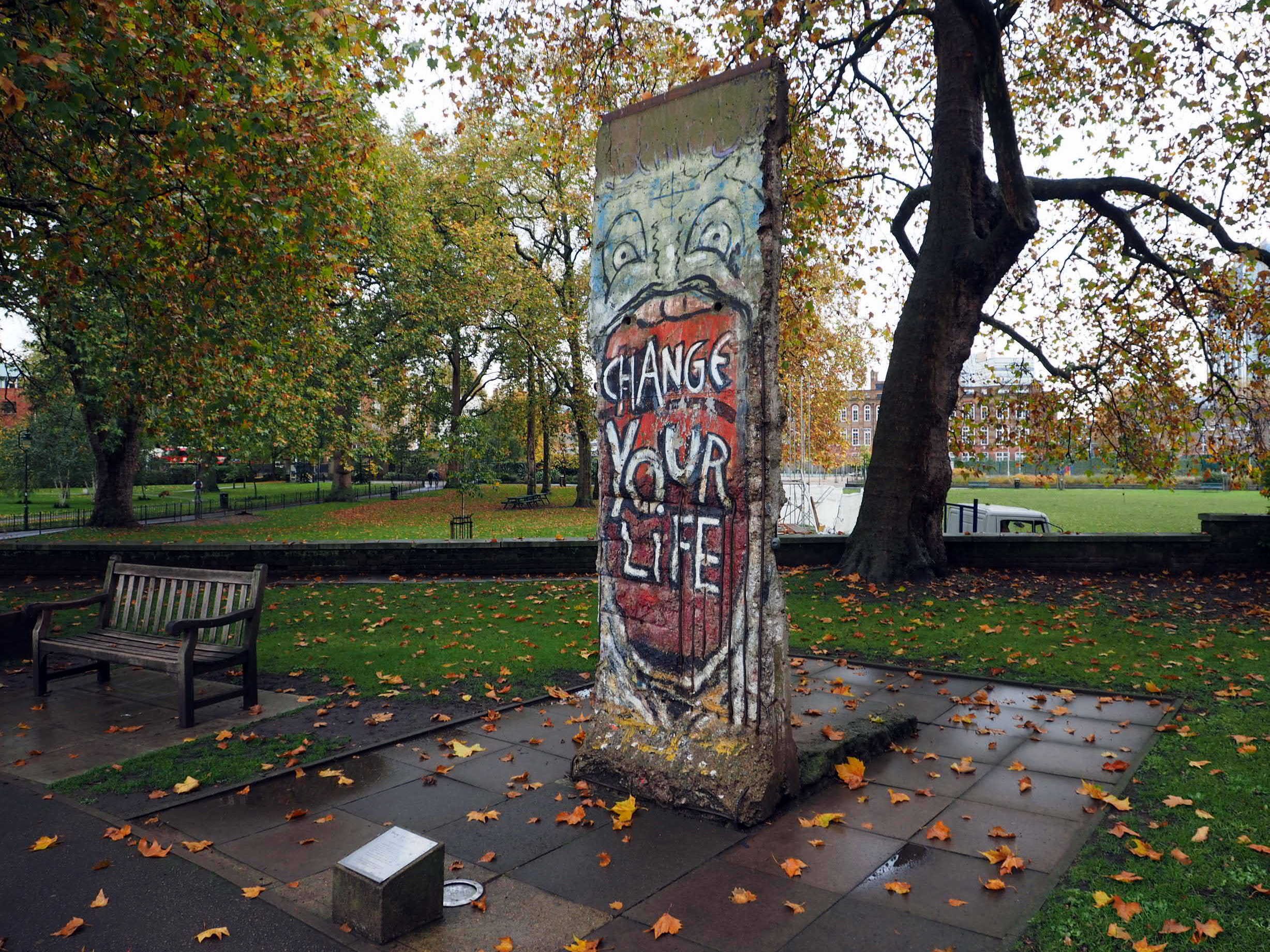 Az Imperial War Museum területén található az a darab, melyet a múzeum 1991-ben szerzett meg magának mint kiállítási darabot. A falon a német származású művész, Jürgen Grosse alkotása látható, a ráfestett felirat jelentése pedig