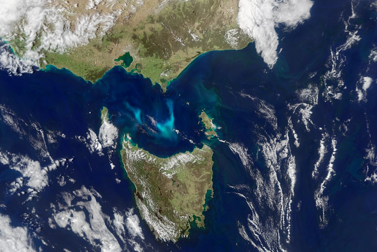 Jeden zo satelitov NASA zachytil v oceáne medzi južným pobrežím Austrálie a Tasmániou nezvyčajnú, modrastú žiariacu formáciu. To, čo sa spočiatku zdalo ako tajomný úkaz, sa napokon ukázalo byť obrovským oblakom bioluminiscenčného fytoplanktónu, viditeľným až z vesmíru.
