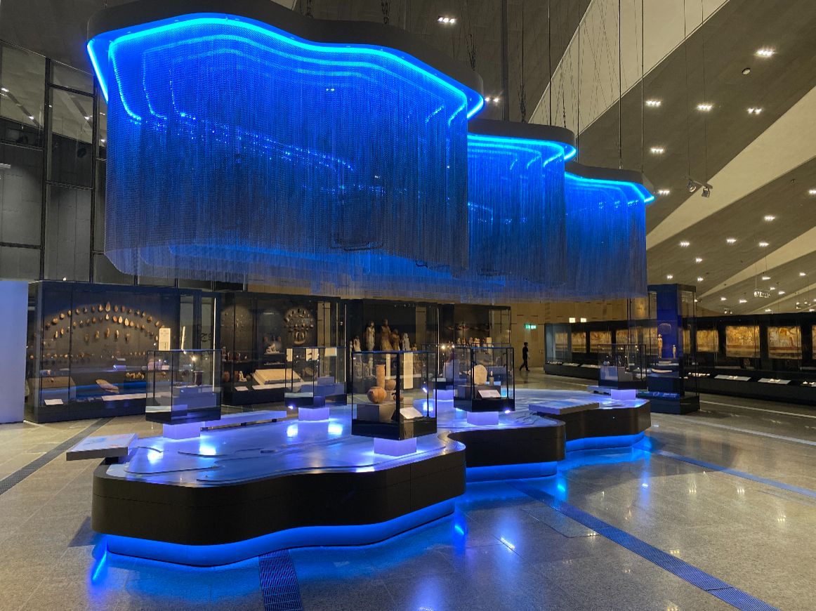 GEM leží priamo pri pyramídach v Gíze a patrí medzi najväčšie archeologické múzeá na svete. Areál má viac než 490-tisíc metrov štvorcových a vystavuje viac než 100 000 artefaktov zo všetkých 30 dynastií starovekého Egypta.