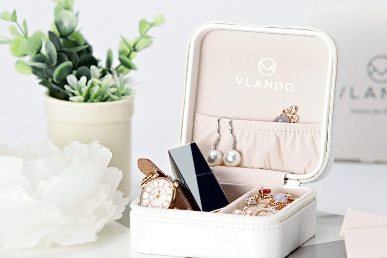 Ďalší problém, ktorý pochopia len ženy na cestách, je bižutéria. Hľadaniu stratených náušníc, prsteňov, náramkov či náhrdelníkov po peňaženkách či vreckách však môžete definitívne odzvoniť s praktickým cestovným kufríkom na bižutériu Vlando. S rozmermi 10,5 x 10,5 x 5,5 cm a koženým povrchom odolá cestovateľským výzvam, prenášaniu, no uchová malé cennosti v bezpečí a bez rizika ich straty. Rozdelený je na štyri časti a má zabudovaný držiak na prstene aj elastickú priehradku na sponky.