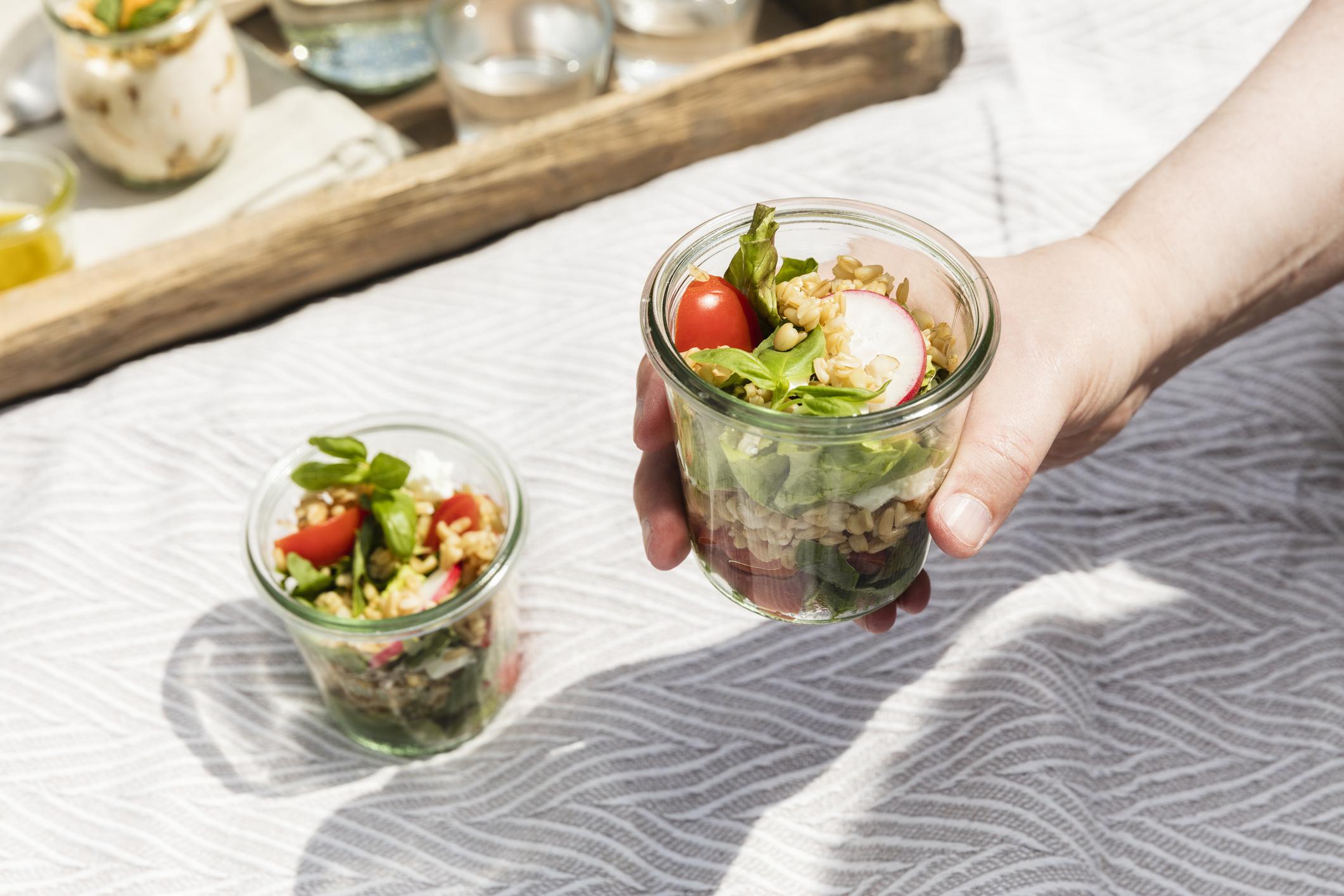 Predstava, ako nakladáte jedlo naberačkou do tanierov, je romantická, no pri pikniku absolútne nerealizovateľná. Omnoho praktickejšie je doniesť si jedlo už naporciované v zaváraninových pohároch s odklopným vrchnákom. Zabalené v alobale a deke vydržia teplé aj dlhšiu jazdu autom.